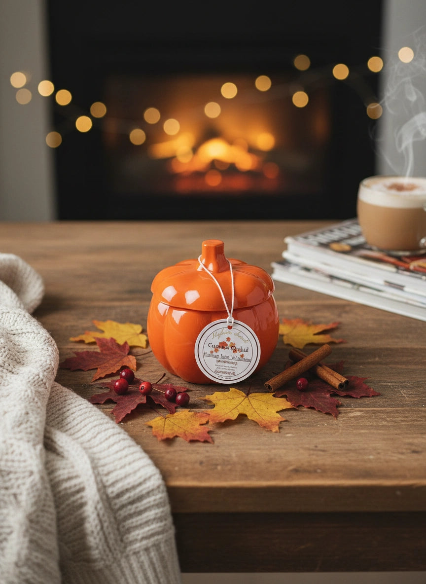 Wrap yourself in the comforting glow of fall with Crimson Orchid — a harmonious blend of tart cranberry, spiced pumpkin, and crisp apple, grounded by warm clove and a hint of orange essential oil. A cozy, inviting scent that feels like autumn’s embrace in every flicker.